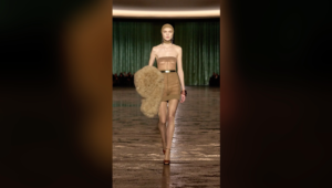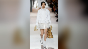Upon the sixth or seventh glance, it became evident that Saint Laurent’s Anthony Vaccarello was not merely revisiting his exceptional collection from last September. That previous collection had featured crisp utilitarian cotton elevated to celestial heights.