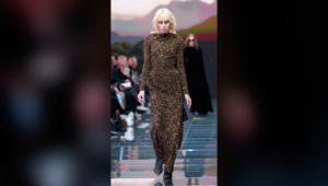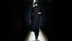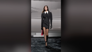 The Versace runway was adorned with opulent black shag carpeting and featured an elegant white Escher staircase. Although not officially Milan’s grandest show, it certainly felt that way, as models weaved through the crowd in a grand figure-eight formation.