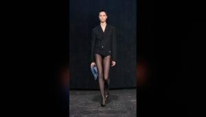 Before the Tom Ford show commenced, darkness enveloped the venue. The haunting strains of the end titles music from “Basic Instinct” played on repeat (at least, that’s what Shazam informed me). In the front row sat none other than Sharon Stone herself, flanked by Uma Thurman, Eva Green, Sam Claflin, Dominic Sessa, and Callum Turner. The paparazzi couldn’t get their fill of these luminaries, and it seemed fitting.