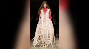 Simone Rocha came in at full gallop this afternoon and, honestly, it felt like being swept up into something half dream, half fever vision. She does this thing—quietly, meticulously—where she gathers references that feel distant, emotional, almost mythic, lets them sit and steep forever, and then releases them all at once in a setting that makes you forget where you are. “I’m hoping it will feel like a big visceral feast,” she said backstage before the show. And yes. Feast is the word. Once everyone found their way into the venue, there was no easing in—we were off.