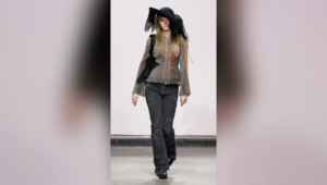 The worlds female designers build around themselves—these intricate, insular universes of memory, craft, and self-mythology—only seem to grow more expansive, more nuanced. Pauline Dujancourt spins hers from knitwear, a delicate lattice of pre-Raphaelite romanticism and obsessive handwork: fragile mohair webs, chiffon ribbons trailing like ivy, stitches so fine they barely exist. After years of quiet presentations, refining her whisper-soft sensibilities into something tangible, this was her first time on a London runway.