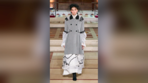 Two thousand origami birds hung above Thom Browne’s runway—fluttery and poetic, but don’t be fooled. The show kicked off with two models in head-to-toe gray, folding more birds at a table in the middle of the set. For a second, I thought we were getting a subdued, monochrome Thom moment. NOPE. Turns out this was one of his most colorful collections in ages—think candy-hued bird motifs and specially woven heritage tweeds bursting with life.