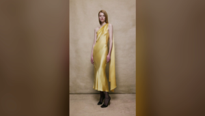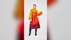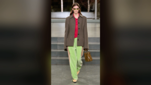 Johnson Hartig’s fall collection came full circle—literally—when he unearthed watercolor sketches he had stashed away two decades ago, originally inspired by Sonia Delaunay. In a moment of cosmic coincidence, Delaunay is currently enjoying renewed attention, with exhibitions at Bard and the Guggenheim—though Hartig only realized the connection after committing to the theme. His vibrant, expressionist prints adorned jackets trimmed with candy-colored marabou, glittering crystal embellishments, and a knockout pair of Larroudé boots. The designs even translated into grayscale knit separates, proving that Libertine’s signature maximalism can take on many forms.